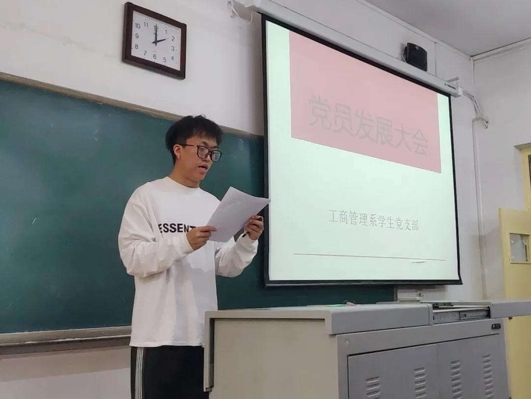 工商管理系学生党支部召开学生党员发展大会,本次大会的主要议题为讨论吸收发展贾启琰等117名同志为中共预备党员。本次发展会严格按照接收中共预备党员的议程进行。