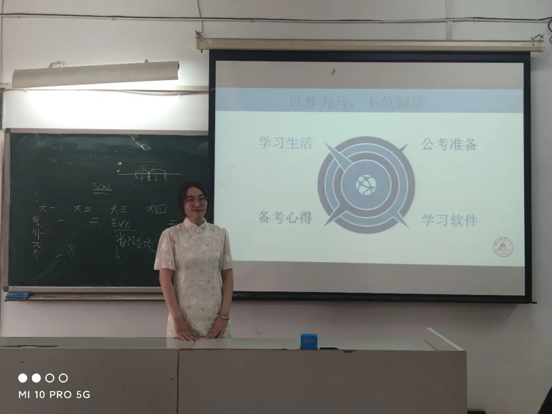 马健美是原校学生会副主席、院学生会主席,考取了河北省定向选调生。她结合自己的大学生活经历,分享了自己在校、院级学生会中参加学生工作的体会,坦言正是这些经历提高了她的自信心,也锻炼了她的组织沟通能力。她建议同学们明确奋斗目标,合理规划学业,并积极参加丰富多彩的校园活动,从各方面提升自己。她也建议同学们多参加技能竞赛,多结交积极向上的朋友,保持正能量,积极应对每一天。在将来就业的选择上,她也结合自己考公的经历进行了简单分享,她希望同学们明确目标,找准方向,找到适合自己的学习方法,并持之以恒的坚持下去。
