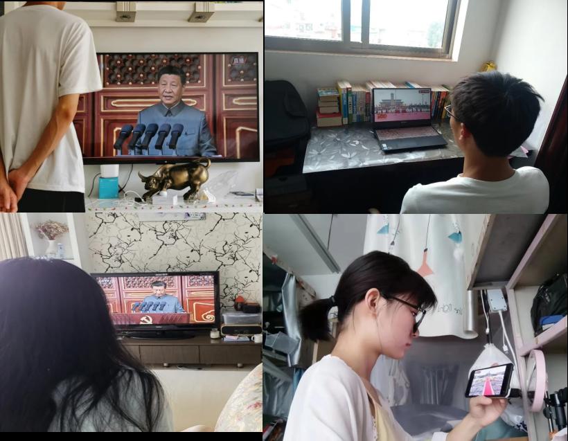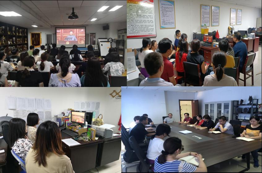 领导班子和全体教师准时集体观看建党100周年大会直播,聆听习近平总书记的重要讲话。大家内心无比的激动,为党领导人民取得的成就感到无比骄傲、自豪,情不自禁地鼓掌呐喊。