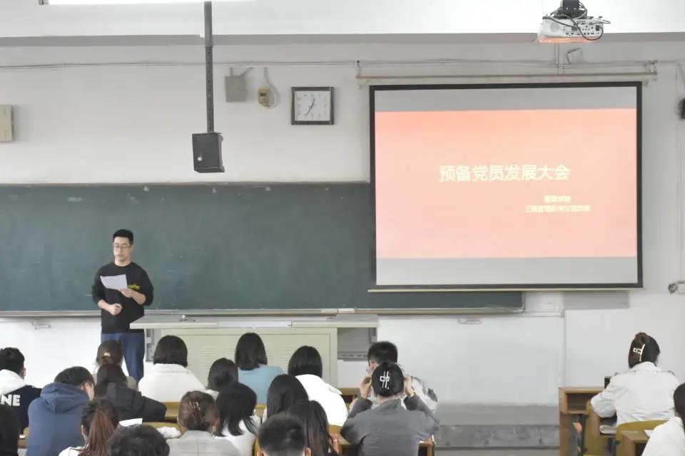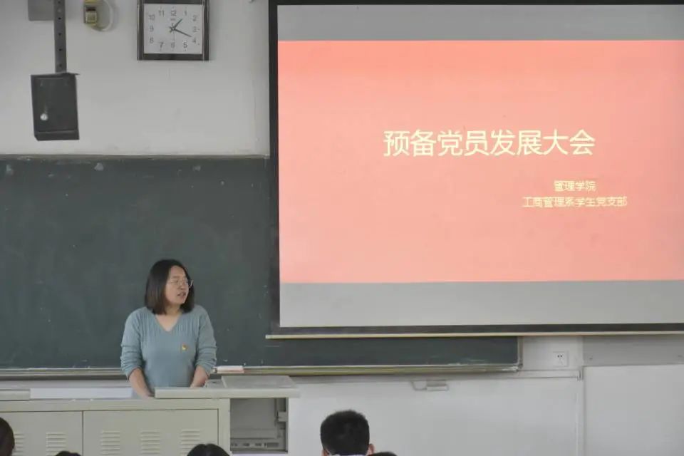 工商管理系学生党支部于2021年11月18日中午12点半,在教二楼310召开党支部大会,本次会议由预备党员姜赫哲主持,参会人员为工商管理系学生党支部在校正式党员、预备党员以及发展对象。会议主要围绕“讨论孙铭然、吴昊、杨佳昊等75名同志发展为中共预备党员的决议”展开。