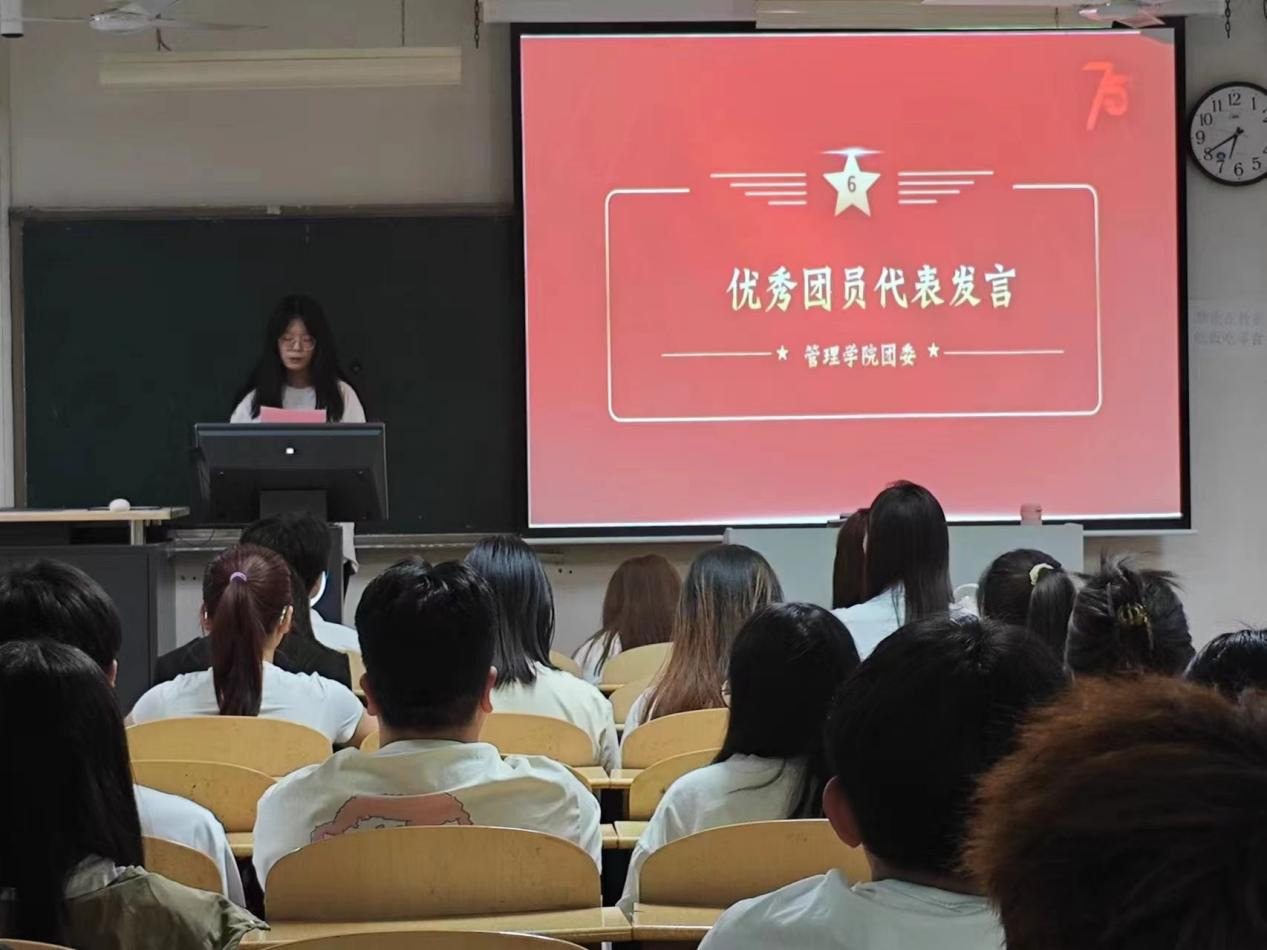 本部2022级大数据二班王鹤超作为优秀团员代表致辞;北校2023级企管七班王旭涵作为优秀团员代表致辞。